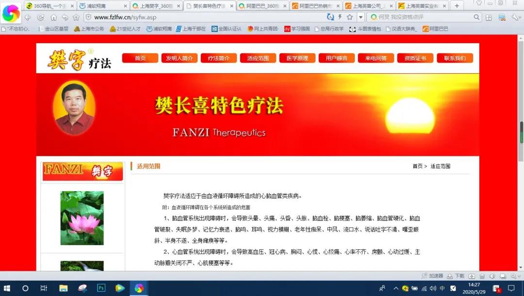 当事人在未获得医师执业资格或者其他卫生部门认可的行医资质的情况下,通过自设网站首页宣传“樊字疗法”的发明人受到原党和国家领导人亲自接见,并将领导人照片刊登在网站首页显著位置。同时宣传“樊字疗法从根本上铲除由血液循环障碍造成的各种疾病,如高血压、脑血栓、脑梗塞、脑萎缩、脑血管硬化”等内容。