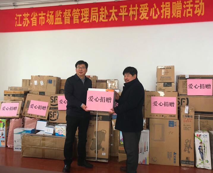 1月23日至24日,省市场监管局副巡视员冯兴汉率队赴省局挂钩帮扶的泰兴市黄桥镇太平村、沭阳县胡集镇华长村和钱集镇万庄村进行走访慰问,并开展爱心捐赠活动,向三个挂钩帮扶村捐赠了价值24.7万余元、共计1300余件的家用电器、羽绒服、家纺等生活用品。省局人教处、网监处、企信局、消保分局等相关处室负责人,泰兴市、沭阳县以及省委驻沭阳县帮扶工作队有关人员陪同参加了慰问和捐赠活动。