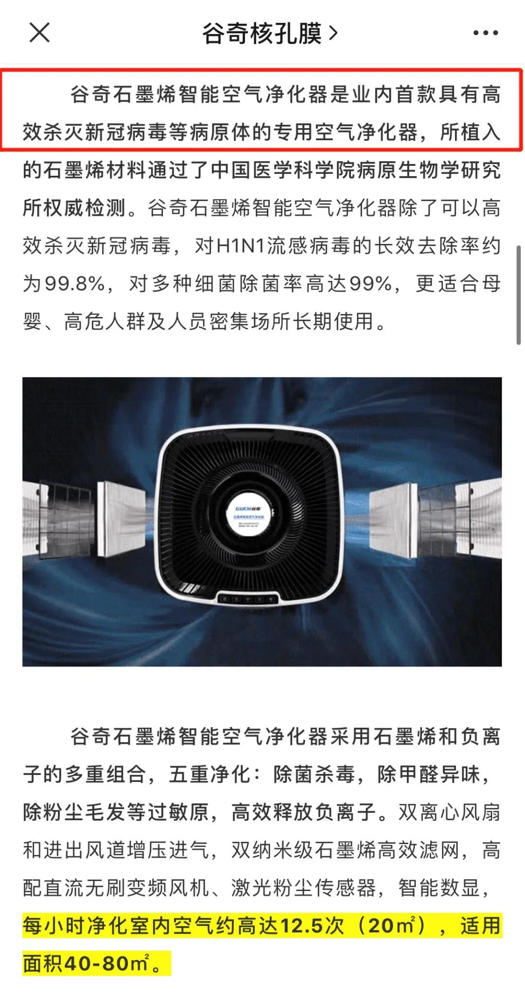 当事人在其注册的微信公众号发布“石墨烯空气净化器:除菌杀毒(新冠)才是基本功”的广告,在没有科学和真实性依据的情况下,宣称“是业内首款具有高效杀灭新冠病毒等病原体的专用空气净化器”等内容,构成虚假广告。