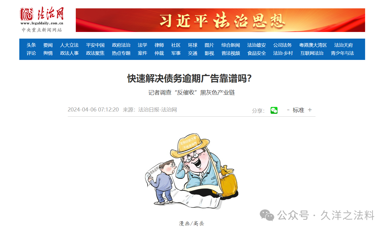 长期从事金融业务的北京瀛和律师事务所律师张珊向记者介绍,他们团队也注意到,现在网络上有一些反催收的黑灰产业包装成所谓的“法务公司”“法律咨询公司”等,对外宣称可以停息挂账,暂时停止对未付本金收取利息并延长还款期限,提供“债务协商”和债务优化等服务,吸引了不少金融借贷逾期负债者。